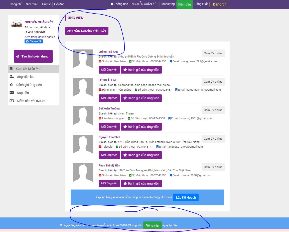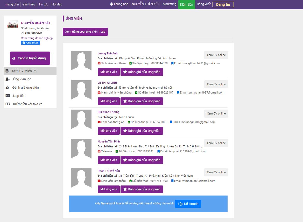 - Xem ứng viên miễn phí: